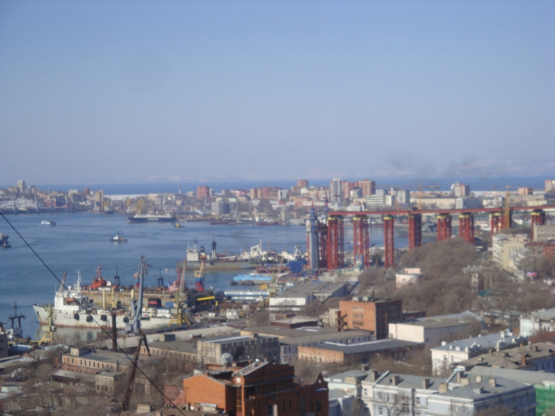 Our departure from Vladivostok did not change my opinion of the city. It is in desperate need of planning and cleaning. It is much larger than I thought and the high apt buildings range from the dirty concrete bloc that hasn’t seen maintenance in decades to the new expensive ones being built for those who will be able to afford them. There is a lot of building, including an awful monster of a bridge right in the middle of town across the Golden Horn. Everywhere you look there is building – just no one building. I hate to even get started on the car situation.