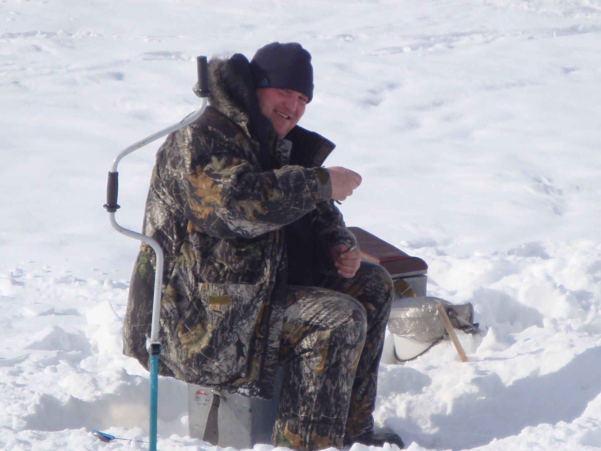 - Ice fisherman catches bait