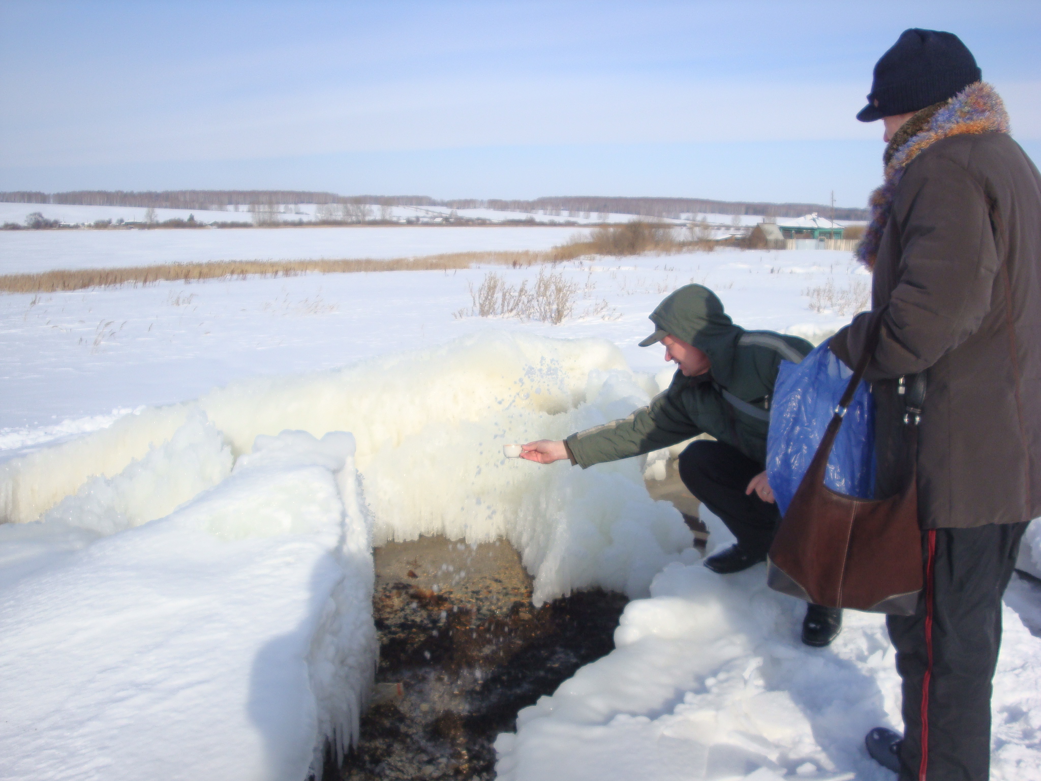 We had a wonderful time stomping thru deep snow to three different mineral springs. There are paths but the snow is still deep. All springs tasted different. This is a area known for its mineral springs and people come from all over to fill bottles with the water. Also to be observed were many ice fishermen; the Red Star collective, once the largest farm for pigs; large modern homes representative of the “new Russia” that could pass for any American town.