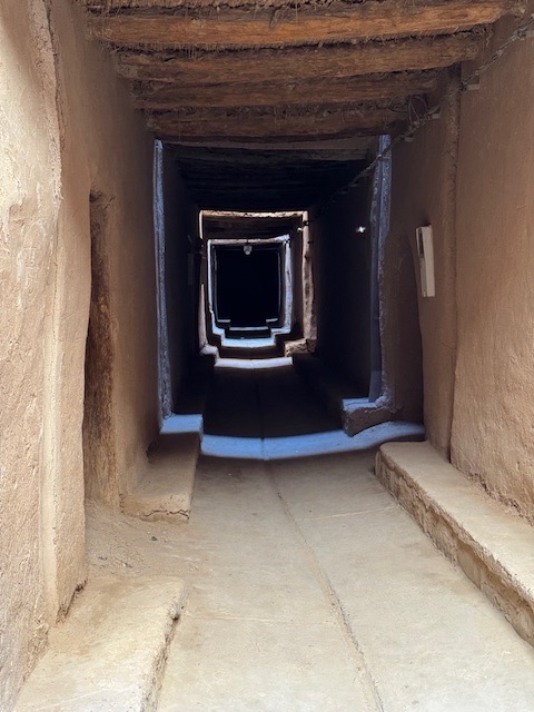 All the traditional architecture of pre-saharic valleys is based on the basis of fortification. Built from stone or mud-brick/adobe (mud and straw), these villages were designed to protect Berber communities from invasions, harsh weather, and raids. They typically featured high defensive walls, watchtowers, and a single fortified entrance. The long enclosed walkways are dark and cool, occasional gaps left in the timbered ceiling to let in light but not the heat.