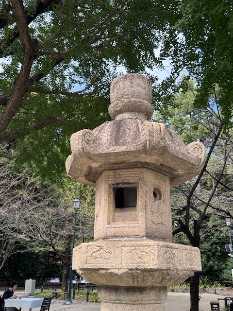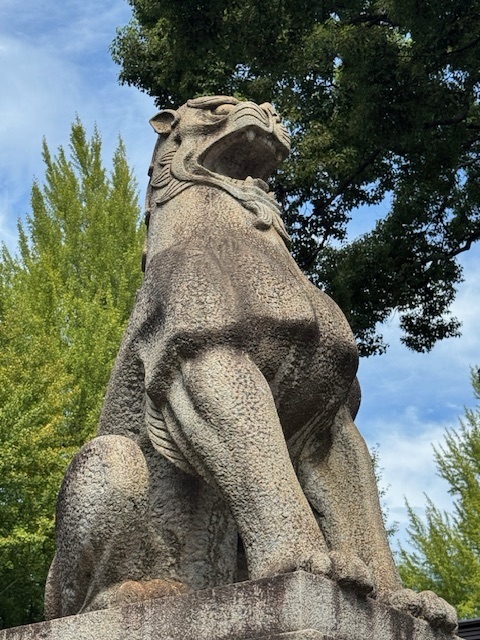 A little farther on stands the Stone Torii, sturdy and quiet, flanked by guardian lions. Closeby stands the bronze statue of Ōmura Masujirō—often called the father of the modern Japanese army.