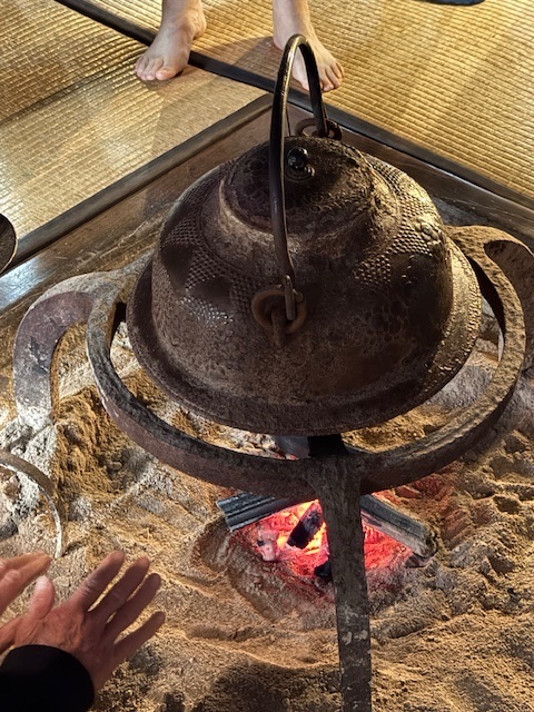 Inside, everything—living quarters, workspaces, silkworm lofts—fits under one massive roof. It’s both rustic and ingenious—every corner of the house designed for survival in deep mountain winters. I notice the common fire pit and kettle in the center of the main room and am reminded this is the sole source of heat for the entire three floors of the house! In winter!