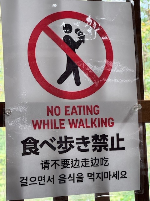 Many shopping opportunities as one walks thru the village toward the long suspension bridge. Signs posted to remind me of Japanese etiquette.