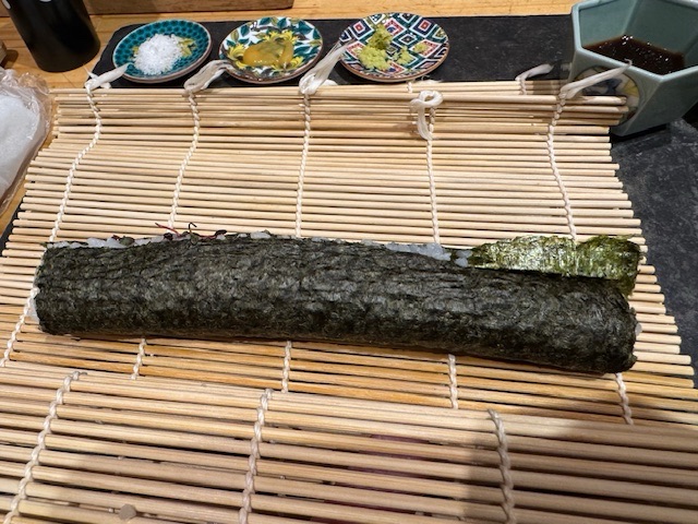 I make my sushi to taste. Having just somewhat mastered chopsticks, here hands are allowed. The dining experiences never end in Japan.