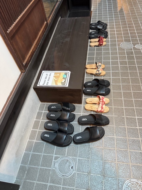 Learn your shoes! Wearing the wrong ones in the wrong place is a huge no-no. There are slippers in every room. Always one more pair waiting to be worn for five steps and abandoned at a door. Ultimately, you will take your shoes on and off more times than a centipede at a sock fitting.