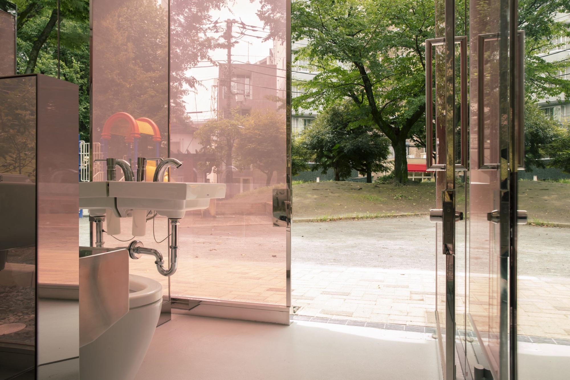 How about transparent glass-paneled public toilets?