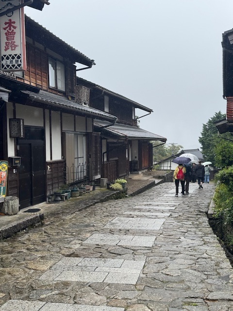 For the past three days, we have traveled along this mountain path and through the post towns of Narai and Tsumago along Old Nakasendō Way. This morning, beneath cloudy skies and light showers, we hike a portion of this centuries old trail. Once the path for traders, samurai and shoguns, it now attracts tourist from around the world.