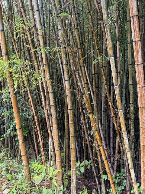 The dense bamboo groves are smaller in scale but equally striking. Common species in this region grow to around 30–50 feet. The culms are slender compared to the massive cedars, and they crowd closely together, creating a soft rustling sound in the wind and an almost enclosed green tunnel for walkers.