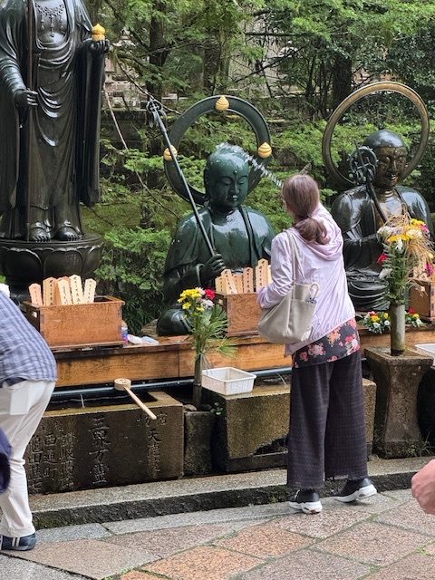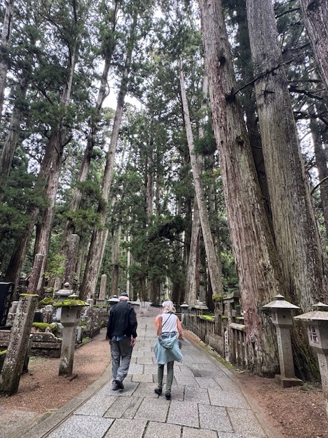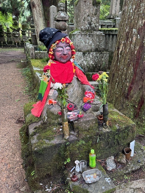 We walk through the vast Okuno-in, with thousands of graves and memorials to feudal lords and other past luminaries. This cemetery alone contains more than 200,000 graves, memorials, and stone lanterns and even large centographs for earthquake victims. Markers do not all belong to emperors, feudal lords or monks. Many graves remember the ordinary people who just wished to be buried near Kōbō Daishi.