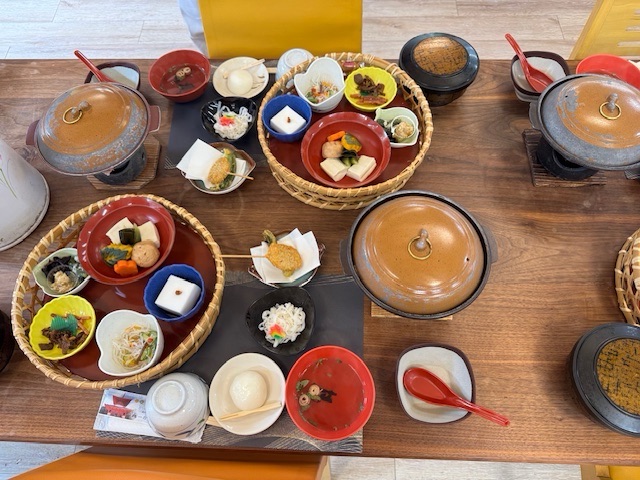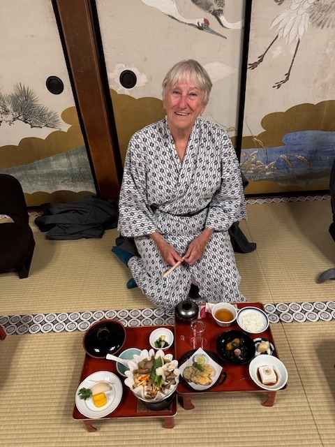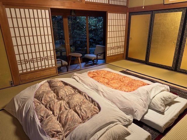 A ton of Damp Rid will not defeat the musty smell. Walls are Shoji (paper sliding screens) and neighbors snores may require ear plugs. For dinner, we eat shojin-ryori, a Buddhist vegetarian cuisine.