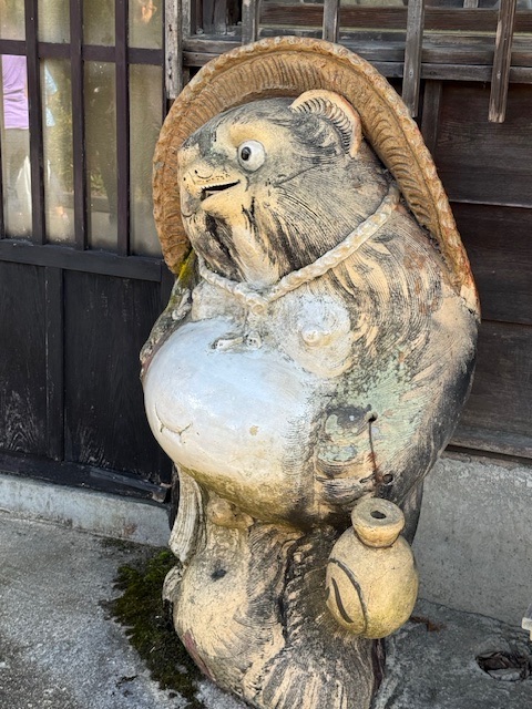 I see the odd statues of raccoon dogs about the street. Called tanuki, the statues are a mix of folklore and fun, and they carry a very specific symbolism. Tanuki statues are usually placed outside restaurants, shops, or inns as charms to attract customers and bring business success.