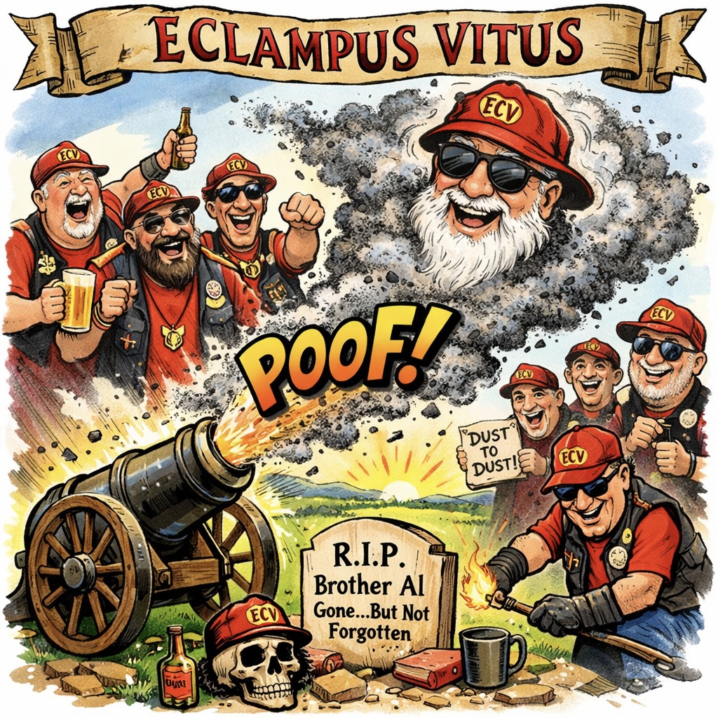 Jim once shared the story of a friend who joined him in the ranks of E Clampus Vitus, where they served as Minor Historians. When this fellow Clamper died, he asked to be cremated. That seemed well and perfectly ordinary—right up until the moment he went off the rails by asking his buddies to fire his cremated remains out of a cannon at the next Clamp Out. So be it! Unlike the stuffy or serious secret societies such as the Masons or Odd Fellows, the request fit perfectly with the more fun-loving Clampers! Or, perhaps it was the drink.
