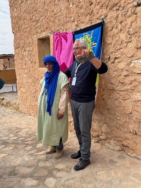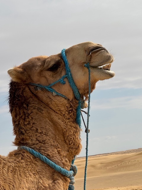 What makes Tamaghza especially striking is the setting: a dramatic mountain oasis where heat, rock, and water collide. You can walk close enough to feel the cool spray. The, look outward to see barren hills rising just beyond the green ribbon of life. It’s refreshing, unexpected, and slightly surreal—a place where the Sahara briefly loosens its grip and reminds me how precious water truly is. I’m sure it was a lifesaver for the desert nomads and villagers. And the camels.
