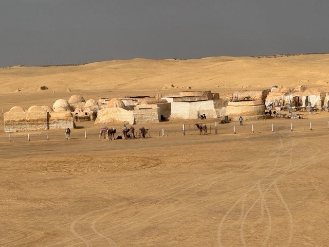 The Lars Homestead lies on the Chott el Jerid (salt flats), where Luke Skywalker’s childhood home was filmed for A New Hope. What remains today is subtler and more haunting than Mos Espa. Low, circular outlines and partially reconstructed domes emerge from the salt crust. The vast emptiness becomes the real attraction here. It’s flat, blinding white stretching to the horizon, with mirages shimmering in the distance. Standing at the site, I recall the twin suns scene, not because of elaborate remains, but because the isolation and silence still perfectly capture Luke’s sense of longing and the mythic pull of the desert.