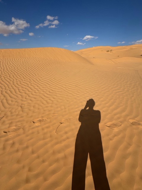 The Sahara is immense—roughy 3.6 million square miles, making it the largest hot desert on Earth. It stretches across 11 countries, from the Atlantic coast of Morocco all the way to the Red Sea. If I were a crow, or aboard a camel, I am talking about roughly 1,100–1,250 miles of largely uninterrupted desert between Morocco and where I stand today. It appears to be an entire continent of unforgiving, roadless and empty desert.