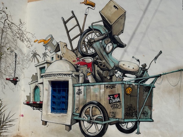 Djerbahood became an open-air street art project created in 2014 by the Paris-based Galerie Itinerrance. Instead of a conventional museum, the village itself became the project. Erriadh was chosen because of its traditional architecture and need for clean-up and saving.