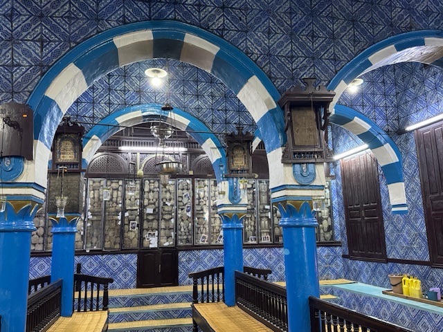 From the outside, the synagogue looks modest and almost fortress-like. It quietly blends into the village of Erriadh with its whitewashed walls and simple courtyard.