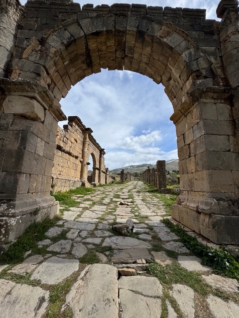 Ancient Cuicul, today’s Djemila, remains an impressive Roman city. What makes Djemila especially striking is its setting. Surrounded by green hills and open sky, and all that snow, the pale stone ruins feel both monumental and serene.They offer a vivid sense of everyday Roman life carried out far from the empire’s center.