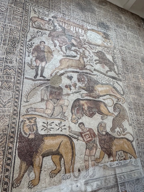 The museum contains the most spectacular collection of Roman mosaics imaginable. Tall walls display massive mosaics in excellent condition.