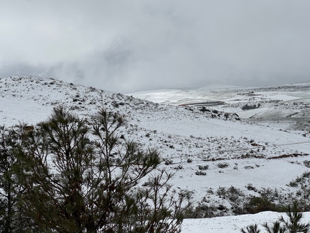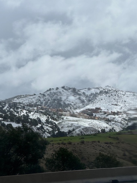 To me, we are not that high in the mountains, yet there it is in all its glory. Skies are schizophrenic and loom dark one moment, peekaboos of blue the next. And there, over the Atlas Mountains layers of white snow. Captivating but cold.