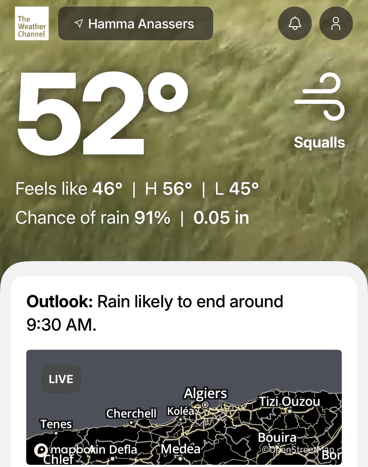 Climate Change becomes real. While Algeria welcomes rain, the blustery winds and cold temperatures make for winter-like travel. I continue wear layers of long and short sleeve shirts and my windbreaker. It feels hardly enough. I did not bring a winter coat. Admittedly, my bag is a lot lighter, so there is that.