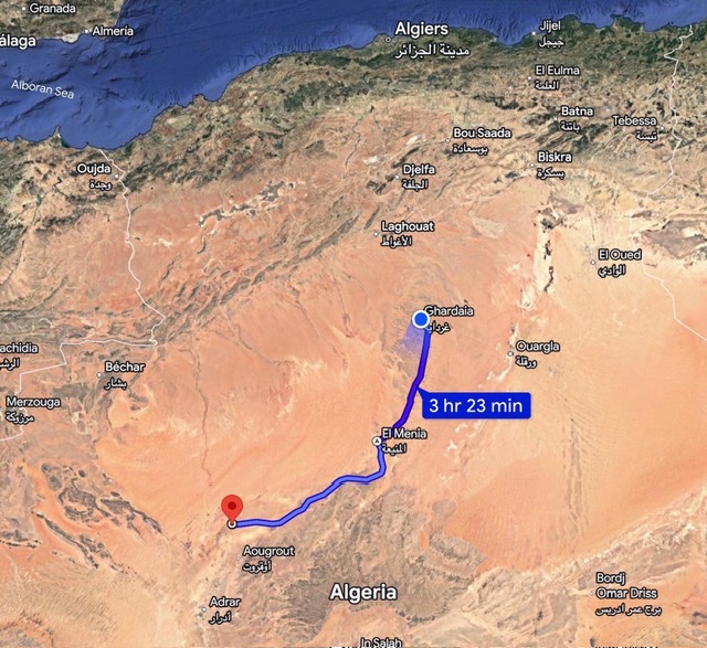 Couldn’t we fly? Technically, yes. However, flights between the M’Zab Valley’s Ghardaïa Airport and Timimoun Airport fail to operate on a direct, daily basis. Al Algeria requires connecting in Algiers rather than flying nonstop. Overland travel seems to be our time-saving alternative.