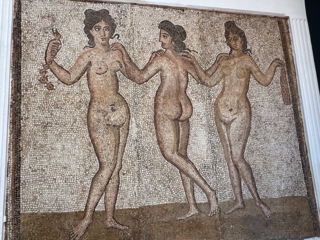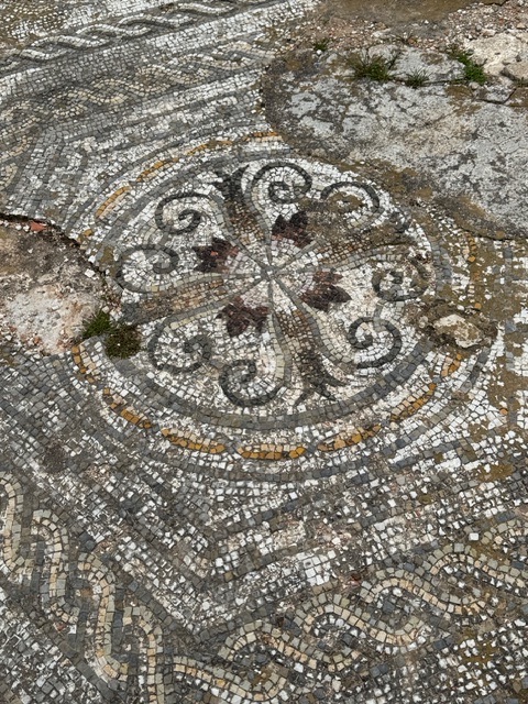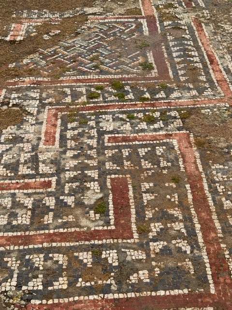 We follow a path upwards among cypress and evergreens, bent over as a result of strong and constant winds. There, even more beautiful and preserved mosaics can be seen.