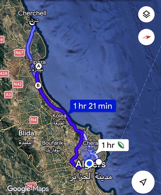 The day seems warmer as there is less wind, but rain threatens to pour on our parade. Driving west along the bay for about 150 miles, we discover some of the best Roman archeological sites in the Algeria.